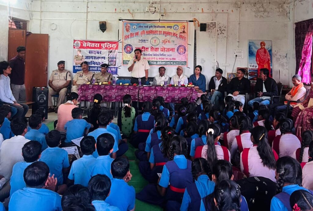 दैनिक मूक पत्रिका बेमेतरा- रेवेंद्र सिंह वर्मा कृषि महाविद्यालय एवं अनुसंधान केंद्र, बेमेतरा के तत्वावधान में संचालित सात दिवसीय राष्ट्रीय सेवा योजना (एनएसएस) विशेष शिविर के पाँचवें दिन साइबर अपराध जागरूकता कार्यक्रम का आयोजन किया गया। यह कार्यक्रम बेमेतरा पुलिस विभाग के सहयोग से आयोजित हुआ, जिसका उद्देश्य ग्रामीणों एवं युवाओं को डिजिटल युग में सुरक्षित इंटरनेट उपयोग एवं साइबर सुरक्षा के प्रति जागरूक करना था।