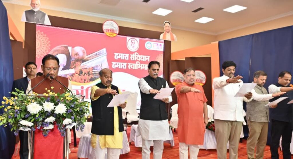 मुख्यमंत्री साय की उपस्थिति में संविधान की प्रस्तावना का सामूहिक वाचन किया गया, जिसमें सभी अतिथियों, अधिकारियों एवं विद्यार्थियों ने उत्साहपूर्वक सहभागिता की।