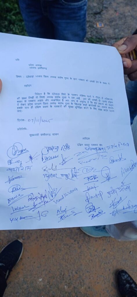 दैनिक मूक पत्रिका दंतेवाड़ा – दक्षिण बस्तर जैसे नक्सल प्रभावित क्षेत्रों में पत्रकारिता करना हमेशा से एक चुनौतीपूर्ण कार्य रहा है। यहाँ सच्चाई लिखना न केवल कठिन, बल्कि कई बार जानलेवा भी साबित होता है। इसी बीच एक जिला अध्यक्ष द्वारा पत्रकार को दी गई धमकी ने फिर से यह सवाल खड़ा कर दिया है — क्या लोकतंत्र का चौथा स्तंभ अब सिर्फ दिखावा बनकर रह गया है?